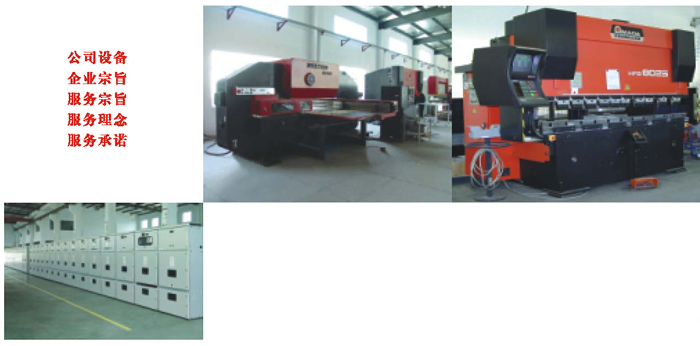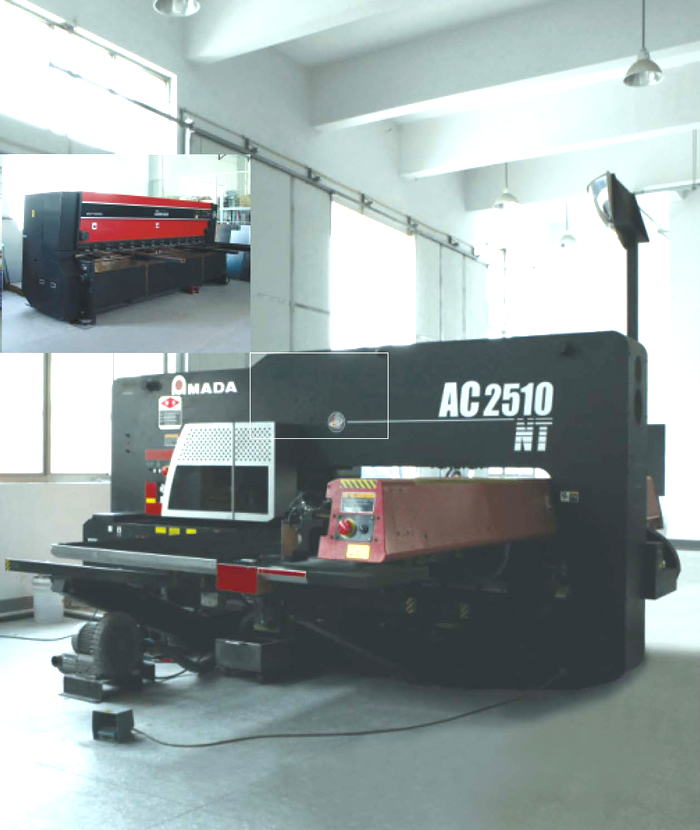 公司设备:公司设备先进,配套完善,较早引进高精度日本AMADA数控冲床、数控剪剪板机、数控折弯机、自动冲孔机及氮弧焊机、二氧化碳焊机等各式钣金加工设备